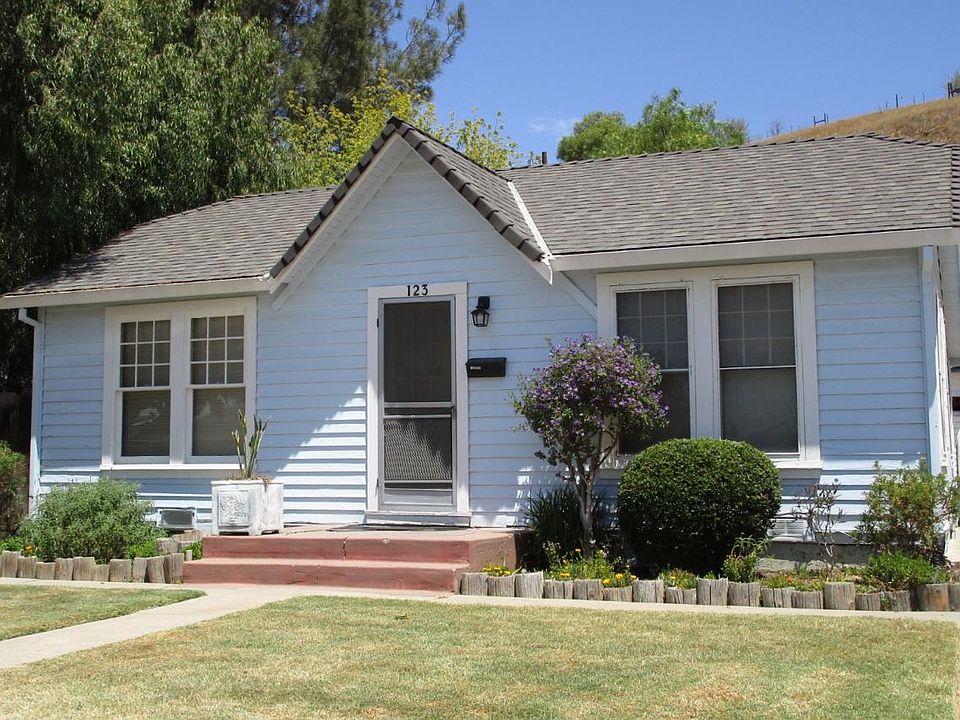 Cute, cute, cute! Older, but clean home near downtown Hollister with unique, old school charm. Wooden counters, sconce light fixtures in bathroom, laundry porch with tub/sink, composition roof, and good size basement! Over 5500 square foot lot with tons of concrete. Has detached one car garage at rear and storage/workshop area. Even has covered patio in back yard for gatherings. Mature landscaping and mostly newer fence are already done. Come see why this should be your first home or fixer-rental before it is too late! Call your Realtor today and schedule a time to view.