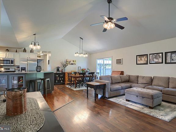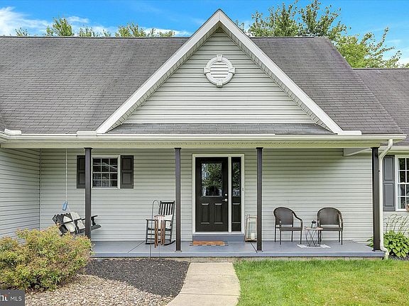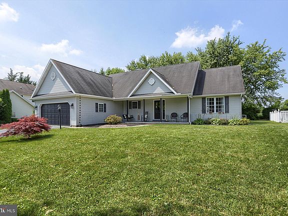 SIMPLY GORGEOUS! All new trendy paint colors, LPV flooring and lighting throughout this lovely ranch home with picturesque sunset views! Offering a spacious open floorplan, this delightful ranch features a vaulted first floor Living Room, open to a handsome kitchen with a generous amount of cabinets, large island with breakfast bar, and Stainless Steel appliances including Refrigerator, Dishwasher, Built-In Microwave, and gas Oven/Range. Complete with breakfast buffet, the Kitchen boasts a spacious eat-in area. The dining area with a view leads outside to the covered patio, with enchanting string lighting that stays. The private Primary Bedroom features an en-suite Full Bath with dual sink vanity and generous Walk-In Closet. Additionally, the Main Floor Laundry presents a wonderful option for the ease of 1st floor living. The spacious 2nd and 3rd bedrooms have adjacent full bath and plenty of closet space (one with a walk-in!) The full, finished basement with high ceilings is an awesome addition! Plenty of options for finished living space for family room, recreation room, an in-home gym, office space or craft room; and there's still plenty of room for storage in the back section of the basement. Enjoy entertaining on the inviting covered front porch, complete with porch swing, or enjoy summer evenings on the rear covered patio. Utilize the shed for storing items outside of the Two-Car Garage. Efficient forced air gas heat and Central Air. No HOA here, just a sweet neighborhood conveniently located minutes to Hershey, downtown Harrisburg, Harrisburg International Airport, Palmyra High School, and Penn State Harrisburg. Move right in, today!