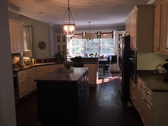 4 Bedroom (w/attached vaulted office/sitting room), recently renovated master bath with vaulted ceiling and new his/her closets, 3 1/2 bath, Formal Living room, Formal Dining room with custom woodwork, Family Room with coffered ceiling, 2 story entry-way, 2 sets of stairs, kitchen with walk in pantry, island and eat in breakfast area with custom banquet seating. Mud room and large laundry room, Bonus Room, lots of storage and 2 car garage. Covered porch with stairs to patio. Large front and back yards.