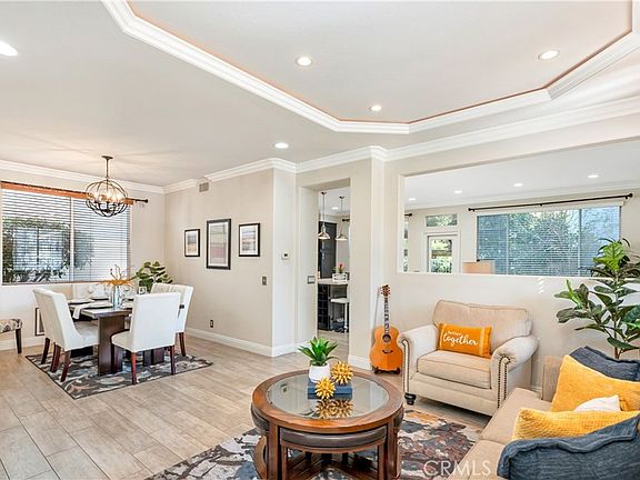 Step into the serene comfort of this Happy Home nestled within a tranquil corner of a gated community. Offering ample space and modern amenities, this residence boasts 4 bedrooms, a generous loft, 2.5 baths, and an oversized 2-car garage. Don't miss the private patio. Recently refreshed, this detached condo features designer paint, "hardwood" tile floors and a gourmet kitchen with endless cabinets. The entrance welcomes you with a graceful living area and an intimate dining space. The contemporary kitchen is equipped with stainless steel appliances, quartz countertops, and elegant crown molding. Relax in the inviting family room, complete with a cozy fireplace and mantle. Outside, the secluded backyard provides a peaceful retreat for al fresco dining or unwinding under the stars. Upstairs, discover the romantic primary suite. Indulge in the oversized tub, glass enclosed shower, separate vanity, and spacious walk-in closet. Additionally, three large secondary bedrooms, a hallway bathroom, linen closet, and individual laundry room are down the hall. Conveniently situated, this community offers access a refreshing pool, spa, and is in close proximity to top-rated schools. Plus, enjoy membership to Lake Mission Viejo for added leisure opportunities. Don't miss out on this ideal blend of comfort and convenience!