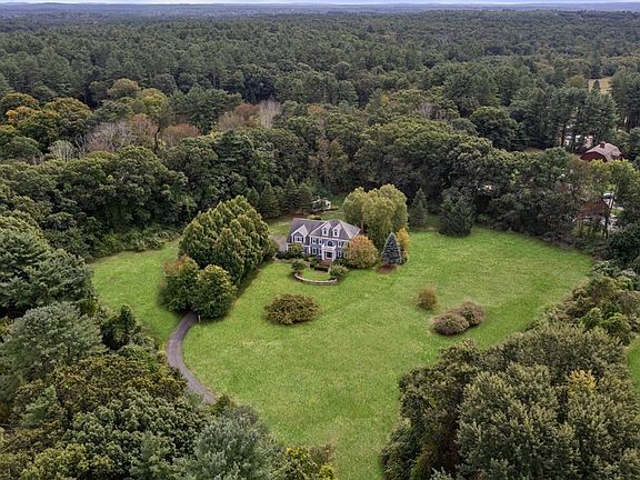 Presenting the PERFECT HOME: elegant yet comfortable, spacious yet intimate & PRIVATE, sited well off the road down long driveway w/a drive up that will WOW everyone! This meticulously maintained 4345 sqft home, located just ~ 20 miles west of Boston, is sited on 5+acres & offers what every buyer is looking for: high ceilings, open floor plan, hardwood floors, custom millwork, large eat-in kitchen w/center island, family rm w/fireplace & built-in cabinetry, additional bonus family rm w/walls of windows & access to gorgeous outdoor patio bringing the OUTSIDE IN! There's a 1st fl full BA w/3 multi-functional rooms if 1st floor in-law/primary is needed, mudrm & laundry. 2nd fl includes large primary suite, 3 more BR, full bath & walk-up attic. Basement is unfinished w/high ceilings & provides potential for add’t living space. 3 car garage, plenty of storage, screened-in porch & shed all on an incredible piece of property. Beautiful home, exceptional schools & easy access to commuter rail!
