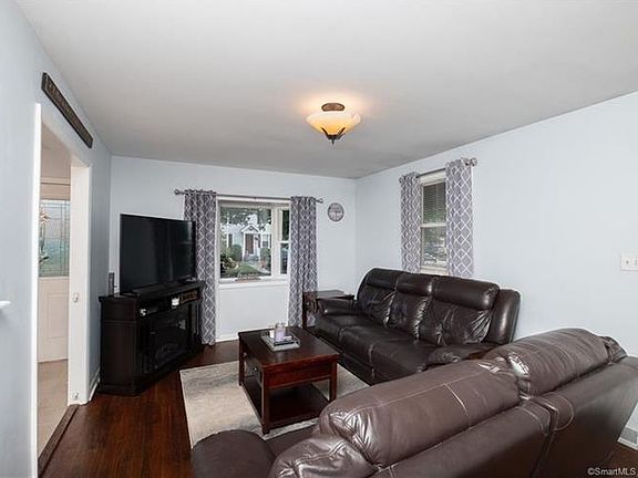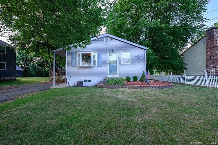 5 room Ranch home 1008 square feet of one floor living with eat-in kitchen, 3 bedrooms and one full bathroom. Stainless steel appliances, granite counter tops and Martin cabinetry in the kitchen. Updated bathroom and hardwood flooring throughout the home. There is a full basement with hatchway that can be finished to add additional living space. Care-free vinyl sided home with thermo-pane windows. It sits on a flat lot and the backyard backs up to Kennedy Middle school athletic fields. Close to downtown Plantsville Village , the Farmington Canal Trail with access to highways. It is move-in ready. Just come in , unpack and relax!