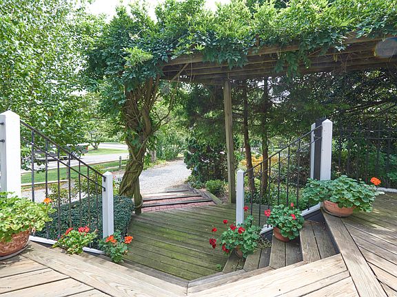 Nestled on lush manicured property in the desirable Navesink section of Middletown, this 4-bedroom, 4 full bath home has a contemporary flair w/Hardwood floors, recessed lighting, 9' ceilings on the 1st floor, overlooking the professional landscaped private yard. DR on the first floor could easily be a 5th bedroom with adjacent full bath. Spacious LR leads to French doors to outside deck.The rear property includes a detached 1 car garage, gazebo and an oasis of gardens. 2nd floor includes a master bedroom, master bath & French doors to a private outside balcony overlooking rear yard. Three additional bedrooms & bath complete the 2nd floor. A perfect Navesink hideaway close to SeaStreak ferry, bus & train for easy commute to NYC. All the above represents a fine home with remarkable value.