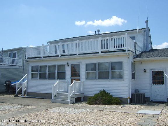 NO SANDY DAMAGE!Spacious Cape,bayviews from huge 2nd floor deck, gaze at Beautiful Barnegat Bay & the Scenic Barnegat Lighthouse.This home has so much to offer! Large yard with fenced in garden area to grow your summer vegies.Huge storage shed, new vinyl bulk head,boardwalk,sink with water to clean your fish, electric dockside,great for the fisherman!Timberline roof is 2 yrs old,2 zoned air conditioning, 2 zoned gas baseboard heat, whole house fan.1st floor has living room,kitchen with large pantry,2 bedrooms,1 bath & a huge room that runs the entire back of house. Could be used as a dining area & great room with views of the lagoon.Upstairs,2 large bedrooms,1 bath.Door leading to deck with stairs leading to yard.Bay beach just down the road with lifegaurd.Boardwalk,gazebo,