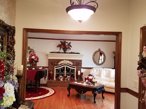 All brick 4 bed 3 bath home with flowing hardwood floors. Located in highly sought after established neighborhood with an excellent mix of professionals, young families and retired residents. Many recent updates; new gas fire place in the vaulted living room, new kitchen appliances, new air conditioning, new Generac, total remodeling of detached guest house, new 6' privacy fence. Several rooms with raised ceilings. Skylight in the eat in kitchen. Custom wood blinds in all windows. Stained glass window. Crown moulding and chair rail. All season glassed-in sun room. Granite countertops in kitchen. Energy efficient, allergy protective furnace. Whole house water softener. New Gas range with convection oven. Tankless water heater. New whole house Generac generator. Walk in storm shelter. Fenced in yard with mature gardens. Three outdoor patios - one 10x12 with firepit, one covered pergola with water feature and one attached to guest house. Detached guest house completely remodeled in 2023. Large amount of attic storage. Security system. Sprinkler system in front and back lawns. 2 car attached garage. Newer roof with Architectural shingles.