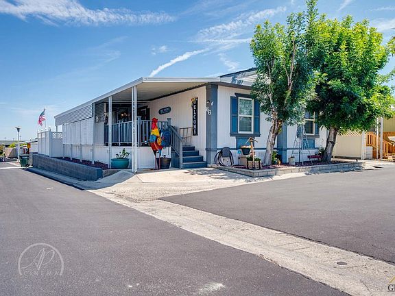 Welcome to this beautiful 3 bedroom 2 bathroom in Buena Vista Mobile Home Park! This home is a show stopper, your search is over! Upgrades from head to toe! From the new roof, fresh interior paint, faucets, fans, all new carpeting and plank flooring. Kitchen will not disappoint with gorgeous tile countertops, skylight and all new appliances. Main suite bathroom is so dreamy with its large soaking tub and skylight. Split wing floor plan, sits on corner lot. Cozy front porch for relaxing, vinyl fencing all around for privacy and astro turf in the backyard for easy upkeep. This is what pride of ownership looks like! The park hosts a swimming pool, spa, dog park, playground, community garden, Clubhouse with full kitchen and pool tables! Must be approved by park management. Call your favorite Realtor TODAY before you miss out!