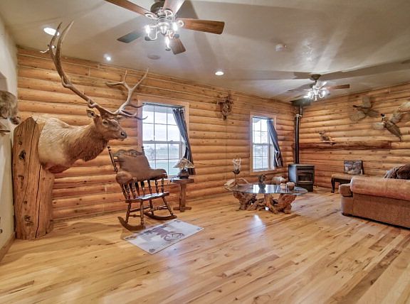 *** Back on the market*** Beautiful solid log home on 5 acres with water rights! This home has also been pre inspected for your peace of mind. Upon pulling up to your new home, you are instantly welcomed with a huge covered porch on the front, a great place to relax and enjoy the views. Inside you will find hickory hardwood flooring, abundant recessed can lights, and a pellet stove in the living room. The large kitchen is finished with tile floors, hickory cabinetry, and granite countertops. There are plenty of cabinets and counter space, as well as a built in pantry around the refrigerator. The kitchen also has sliding doors leading out to the awesome outdoor patio featuring a new covered firepit/kitchen, the perfect place for entertaining or just enjoying the outdoors. The master suite is also located on the main level and features a walk in closet, and private bath with tile floors, hickory vanity, and deep jetted tub. Upstairs you will find two additional bedrooms, as well as a large bathroom with corner shower. The basement is fully finished and gives you a cozy family room with pellet stove and custom stone and timber trimmed bar and entertainment center. There is also an additional bedroom, an office, and a full bathroom featuring a gorgeous custom tiled shower.