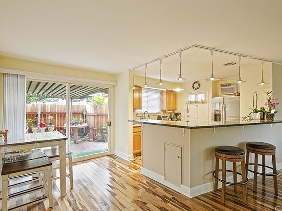 The moment you walk-into this spacious 2 bedroom 1 bath Braemar co-op, you will fall in love! This turnkey downstairs unit has a nice open floor plan with a lot of natural light. The floors have been tastefully upgraded throughout. The oversized kitchen has upgraded lighting, breakfast bar with upgraded granite countertop, and a gas range. Nice walkout to private, covered patio from living area with new fencing. HOA dues include property taxes, fire insurance, lawn maintenance, pool, laundry room, and community gardener. Please note buyers to be board approved and property is owner occupied only, Property cannot be rented. Ownership is stock certificate, CASH ONLY sale. Convenient location, close to downtown Redlands, shopping and dining. These properties don't come around very often, especially on the ground floor.
