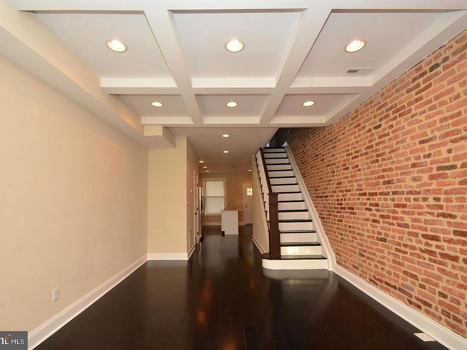 Stunning, fully renovated 3 bedrooms, 2.5 bathroom townhome just blocks from Patterson Park! This home offers an open floor plan on the main with coffered ceilings in the living room, dining area, half bath, and kitchen that includes a large island, gas stove, stainless steel appliances, and granite countertop. Two spacious bedrooms on the upper level including a master bedroom en suite with a walk-in closet and bathroom with custom tile shower. Fully finished lower level is great for guests or 3rd roommate with its true bedroom and full closet. Additional storage space in the basement and laundry for convenience! Bonus rear deck off 2nd level bedroom, fenced patio area for entertaining, and parking pad for easy city living. This home is just blocks from Patterson Park, easy access to major highways and also includes security cameras & alarm for an additional monthly fee of $15. BGE can range from $68-$135 and water averages around $60. Repair deductible $100.