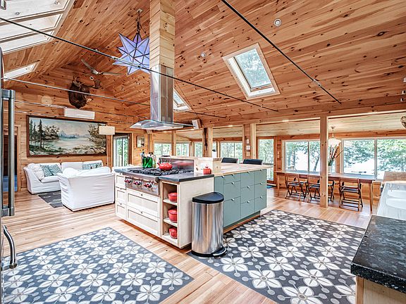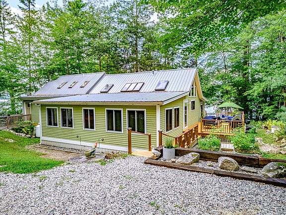 Not your average lake house. 123 N High Street has a lot of ''wow factor''. From the open concept design to the vaulted ceilings, custom cabinets and lighting, expansive views of the lake from most windows, beautiful hardwood flooring throughout, an oversized kitchen island for gathering, multi-tier decking for outdoor entertaining, 3 good sized bedrooms with lots of windows, a one-of-a-kind bathroom with two private toilet stalls and custom tiled shower plus you get Killer views down one of the cleanest and most sought after lakes in the lake's region. Highland Lake is big enough for boating and water sports but small enough to have a quiet and private feel. With approx. 100 ft of frontage, you get a sandy bottom gradual entry into the lake but it's deep enough for any boat to tie off on the dock and it's safe for diving! Other features include parking for all your friends and family, one floor living potential, a heat pump for AC, heat pump hot water heater, multiple heating sources to take the chill out on fall nights, high end appliances and public water is a plus and hard to find on the lake. A new efficient Viessmann boiler is included with the sale. If you want year-round use of the home all it needs is the boiler installed and the floor to be insulated. Bridgton downtown is less than a 1/2 mile down the road for restaurants, cafe, shops, breweries, hardware store, movie theater and more. Don't miss this rare find.