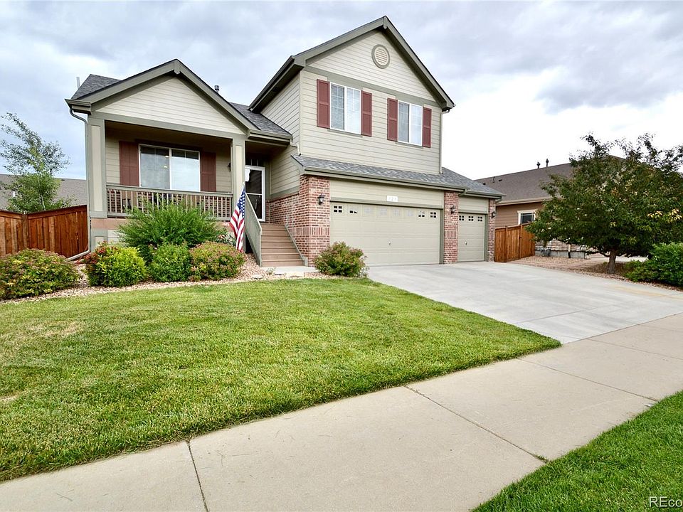 Exceptional 4 bedroom home located in a beautiful and well planned neighborhood on a large tastefully landscaped and well maintained lot. The peaceful outdoor space includes gardens, delightful flower beds, a peach tree and is perfect for entertaining or enjoying quiet evenings under the large covered patio, complete with retractable sun shades for those warm Colorado afternoons. The spacious garage has epoxy flooring protectant is heated and finished. Generous built-in storage and storage racks above make for a remarkable toy palace and workshop. Inside you'll fall in love with this homes layout, finishes, bright open kitchen, warm cabinetry, stainless steel GE appliance package and cozy family room fitted with a stunning fireplace and mantel. Additionally you'll notice a handy, useful mud room area off the garage. Upstairs you will find the primary bedroom suite with an oversized walk-in closet equipped with suitable built-in conveniences. Two additional bedrooms, a full bathroom and laundry room where you will find ample storage and a fabulous added pass through window from the master closet. The basement was recently finished to include a bedroom and multi purpose room that can be used as a home gym, workshop or craft room it was brilliantly built with reinforced, durable and secure walls that together includes a solid door for added security and function. Pride of ownership is displayed throughout this remarkable home. Located close to Southlands and DIA, easy access to E470 and 6th avenue. This home will not disappoint, don't wait come see! OPEN HOUSE SATURDAY JULY 2nd 11am-1pm.