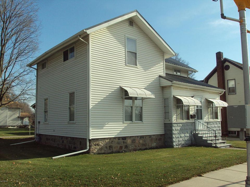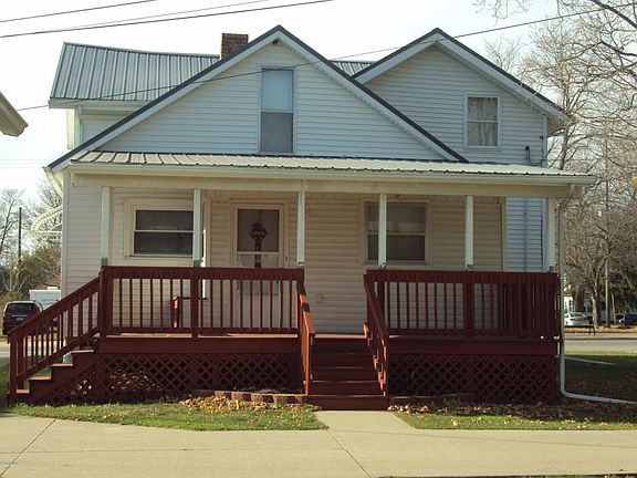 IT'S LOVELY! You Can't Help But Say ''Oh Wow.'' This 3 bedroom, 2 bath home features vinyl siding, a newer Steel roof, replacement windows and a concrete half circle drive. There is a covered back deck and a sun splashed, enclosed front porch. The spacious eat-in kitchen is fully equipped. There's a main floor bedroom, bath and laundry! If you're looking for a light, bright and airy feeling this may just be the one!