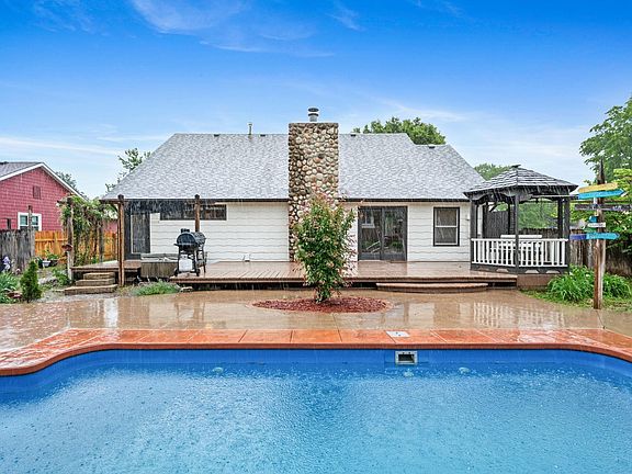 Don’t miss this stunning West Wichita home. This place is a must-see, featuring 4 bedrooms, 3 and a half bathrooms, and a two-car garage. The main floor features a large primary suite with vaulted ceiling, washer/dryer hook-up, walk-in closet and direct backyard access. The kitchen is light and bright with quartz counter tops, eating bar and a large bay window. The main living area includes a vaulted ceiling, wood-burning fireplace with gas starter, and an adjoining dining room with views to the back yard. Speaking of the yard -- this will be your own little oasis boasting an in-ground swimming pool, hot tub, and numerous perennial plants and flowers, including grape vines. There is a large wooden deck with porch swing gazebo, concrete patio with pergola, and privacy fencing. The irrigation system is on well water and features drip systems to several areas of landscaping. It is perfect for entertaining or enjoying moments of solitude. On the second floor of the home, you will find two bedrooms and a full bathroom with a tub & shower combo. The fourth bedroom, a junior suite, is located in the basement which also features a large family room and large utility/laundry room with storage. The home is freshly painted inside and out with new light fixtures, luxury vinyl flooring, and new carpet. Call today to schedule a private showing. Listing agent is related to seller.
