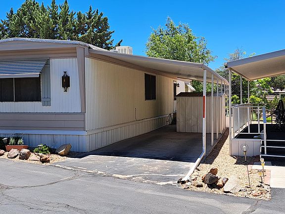 Look no further! Here is your get away retreat in the the lovely downtown of Prescott Arizona and sold furnished!! This is a updated, gorgeous 2 bd/1 ba home with no expense spared on the remodel. Home has recessed lighting and fans installed, newer flooring installed and kitchen cabinets, along with sinks and bathroom upgrades installed several years prior to the sale. Newer water heater installed. Wiring in home is copper. This home is MOVE IN READY! At $335 Lot rent is the lowest in Prescott for a clean 55+ park, that is approx. 1 mile from downtown Prescott, shops and grocery stores within one mile and walking distance to downtown! Come see this gem before its GONE! This is a cash only sale and is sold furnished.