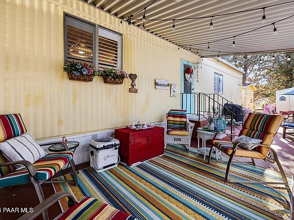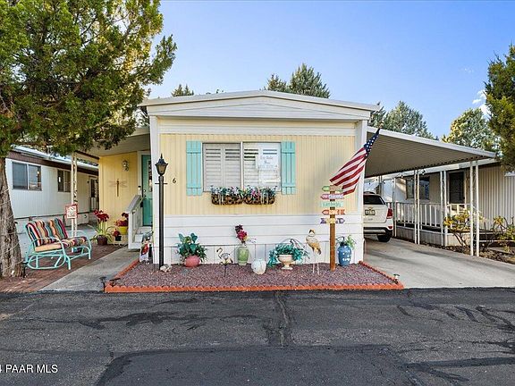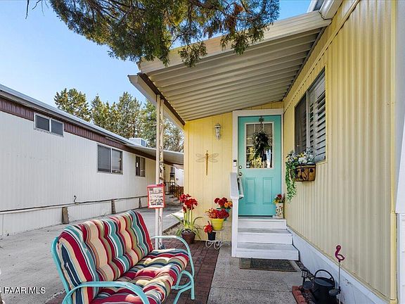 Location, location, location! Financing available! Perfect piece of heaven for your ''over 55'' years. Everything is new! New electricity, copper and pvc plumbing, new toilets. Beautiful custom handicap shower in guest bath, new master tub and master shower. Charming new kitchen with solid surface counters, luxury vinyl flooring throughout. Beautiful enclosed front office, not included in sq footage, can also be a den or guest room. Heatilator fireplace will keep you toasty in the winter and the private patio will keep you relaxing in the summer. Cheerful and fun private outside space for lounging with tea, games and bar-b-ques. Two sheds, use one for storage and one for a great workshop! Best park rate in Prescott. Small park so don't miss out! Walk to downtown festivities on the Square