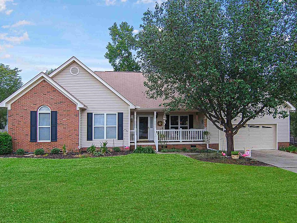Great cul-de-sac location with large backyard with some privacy fencing. In quiet neighborhood with pride-of-owership. In Lexington one school district and River Bluff high. Charming 1 story plus frog; 3Br plus frog, man-cave/office with 3 attic access areas with flooring in all. Open plan with many windows - much natural light. Great room and master bedroom both tray ceilings. Master suite with walk in closet and double vanity garden tub separate shower and private water closet and french doors from master bedroom. Wood flooring installed in kitchen, dining area, foyer and hallway.Covered front porch with vinyl coated railing. Deck on back. 2 car garage with peg board and shelving. Extended length 23Ft 4.5in x 29ft3in approx with room for riding mower in addition to 2 cars. Convenient to interstate less than a mile to 20. Minutes to all of the activity on Main St Lexington. Short commute to Columbia. Termite bond with Clarks. Show and its sold.