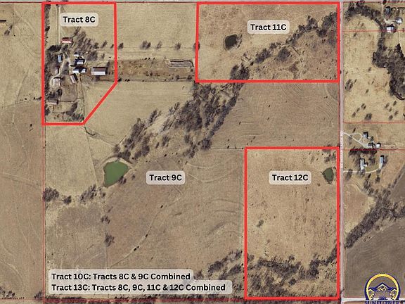 AUCTION: Sunday, April 2, 2023, 1:00PM at Hoyt Community Building. Sitting on 157 acres, this 4200 square foot home has 3 spacious bedrooms, 3 bathrooms and boasts a large living space on a full, unfinished basement. With multiple outbuildings ready for your farm operation or hobbies, you can't pass up this opportunity! This parcel will be offered in six tracts: Tract 8C: the home with 15+/- acres; Tract 9C: 96 +/- acres native grass pasture served by a nice pond; Tract 10C: Tracts 8C & 9C combined; Tract 11C: 20 +/- acres desirable pasture with potential building site; Tract 12C: 26 +/- acres fenced pasture with potential building site; Tract 13C: Tracts 8C, 9C, 11C & 12C combined. See photos for approximate tract locations. OPEN HOUSE: Sunday, March 19, 1:00 to 3:00PM.