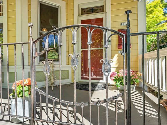 This beautifully maintained and thoughtfully updated Victorian farmhouse brims with charm and traditional features while also featuring modern updates. High ceilings, crown molding, 5-panel doors, detailed trim and an open staircase. Remodeled kitchen includes shaker cabinets, soapstone counter, Italian marble hex backsplash and wood floors. Pocket doors lead from the living room to the spacious dining room. Four bedrooms on the spacious upper level, remodeled baths on each level and an inviting outdoor area for al fresco dining. Exterior paint in 2020, electric car charging outlet, Remodeled kitchen and baths.