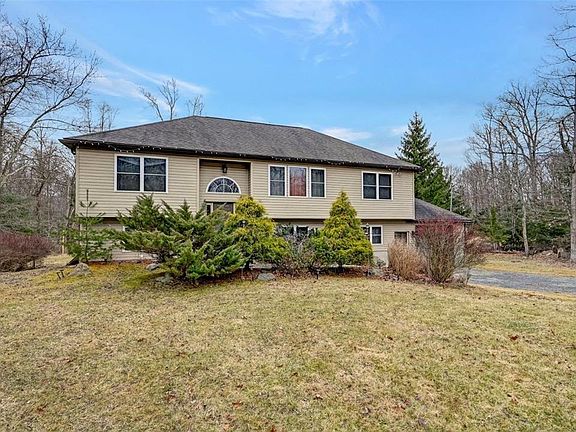 Comfortable & Welcoming Bi-Level Featuring 3+ Bedrooms, 3 Full Baths, Garage & Nearly 3,000 SqFt Of Living Space! Sun-Drenched Open Concept Living & Dining Areas w/ Hardwood Floors, Well-Equipped Kitchen & Stainless Steel Appliances. Family Room Showcases Knotty Pine Ceilings, Tiled Propane Fireplace, Skylights & Deck Overlooking Nature. Primary Bedroom Suite Offers Walk-In Closet, Tiled Jacuzzi Tub & Separate Shower. Wide Open Backyard Has Partially Covered Paver Patio, Fire Pit, Above Ground Pool & Plenty Of Room To Entertain. Located In Charming Mountainhome Neighborhood On .95 Acre Flat Tree-Lined Parcel Conveniently Located Just Moments To Restaurants, Shopping & Pocono Area Attractions! No Community DUES & LOW Annual Taxes Totaling $5,400/Year. You Will Feel At Home Here!