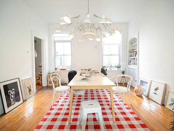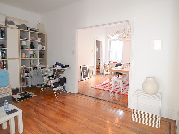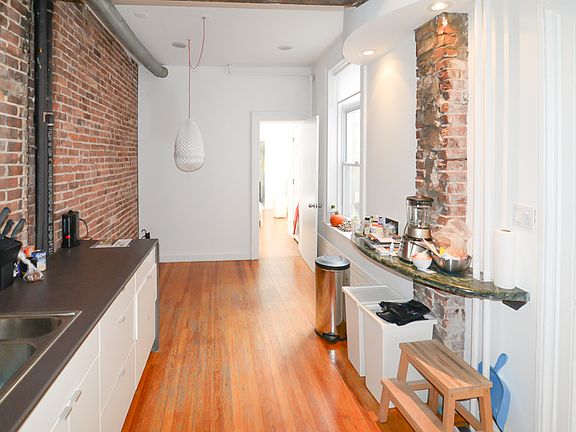 Incredibly rare huge 1 bedroom with home office and dining room that features a private back yard sunny garden. This gorgeous apartment features a huge living room with fireplace and mantle. Gorgeous modern kitchen with exposed brick. Large renovated bathroom with walk in shower and seperate bath tub. Private thermostat to control heat and laundry. Original details through out such as original wood floors. Beautiful tree lined block in the Greenpoint Historic District. Steps to everything on Franklin Street and a short walk to the East River Ferry.