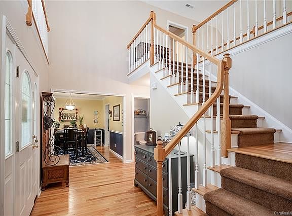 A RECIPE FOR RELAXATION and desirably located within a quiet development, this Southern-Living style home offers over 3800 square feet to roam. From the inviting, rocking chair front porch to the upper level deck, this is a home for year-round entertaining. Master bedroom on main level with updated tile shower. Beautifully appointed kitchen with white cabinetry, quartz countertops and tile backsplash.A pleasant, light-filled family room with gas fireplace and view of the expansive 1.3 acre lot. Generous bedrooms for sleep and play upstairs includes a bonus room with closet currently being used as a bedroom. Finished basement offers a billiard room and space for indoor entertainment. A welcoming outdoor entertaining area with covered patio and beautiful view of the custom-built pool. This home is designed to suit all occasions from entertaining guests to relaxing after a day at work. Located in highly sought after Cox Mill High School District. Desirable location for the city commuter.
