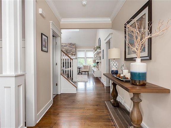 Bright. Modern. Luxurious. As you enter from the inviting covered front porch, you're greeted by gleaming hardwood floors, vaulted ceilings, and an abundance of natural light. The first level open floor plan includes a living room, dining room and kitchen that glistens from custom cabinetry, countertops and backsplash creating a beautiful space to entertain. Move out onto the three-season porch where you'll be surrounded by foliage in your private, fully fenced-in backyard--accompanied by pristine landscaping and a patio that boasts a built-in fire pit. Don't forget about the large first floor master bedroom, featuring an elegant full bathroom and walk-in closet. On the first floor, you'll also enjoy an additional half-bathroom, office space, and laundry room with mudroom that exits to a spacious two car garage. The second level offers two large bedrooms with ample closet space, a full bathroom, a reading nook, and a finished storage or play area. The lower level sets the tone for even more friendly living space in the finished basement with a family room, bedroom, full-bathroom, a private fitness center, and large unfinished storage room. Delayed showings 10/2 & negotiations 10/5.