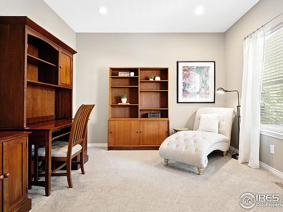 Situated on a quiet cul-de-sac in Erie Commons, this beautifully updated home backs to open space with breathtaking mountain views from Longs Peak to James Peak. Enjoy morning coffee on a peaceful front porch overlooking the cul-de-sac. The bright, open floorplan features a spacious living room with a fireplace, a formal dining room and an updated kitchen with white quartz countertops, new cabinetry, a vast center island, a subway tile backsplash and newer appliances including a gas cooktop. Hickory flooring extends up a curved staircase to the upper level hosting a guest suite and a generous primary suite with a soaking tub and walk-in shower. An unfinished basement offers the potential for personalization. Soak in serene sunsets from a private backyard featuring a patio, hot tub and mature landscaping including maple, apple and lilac trees. With newer lighting, updated laundry/powder room, a private office and a 3-car garage, this home blends comfort, function and Colorado beauty.