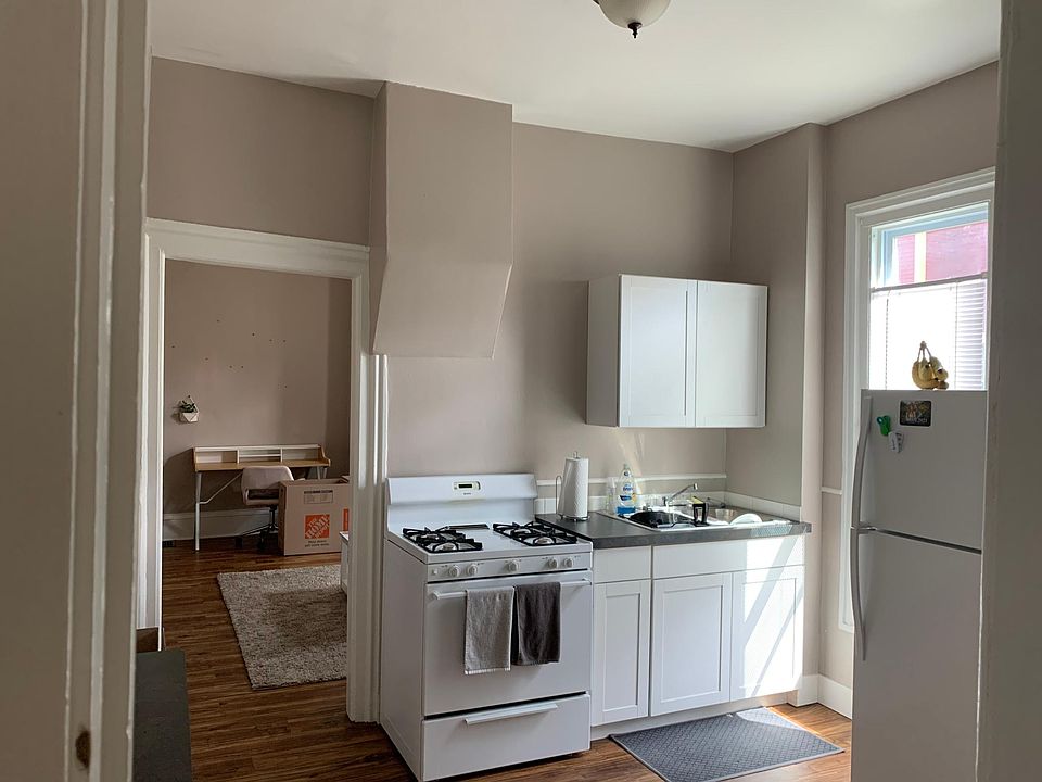 Beautifully remodeled apartment in a quiet neighborhood close to restaurants, down town. This apartment has new windows, updated utilities, and new plank floors. Owner pays for water, trash removal and snow removal. We do not allow dogs buts Cats are OK if they are fixed. Tenant pays for Gas, electric, and internet. (there is another counter with cabinets in the kitchen that did not get in the pictures) Zillow credit applications will get you qualified more quickly