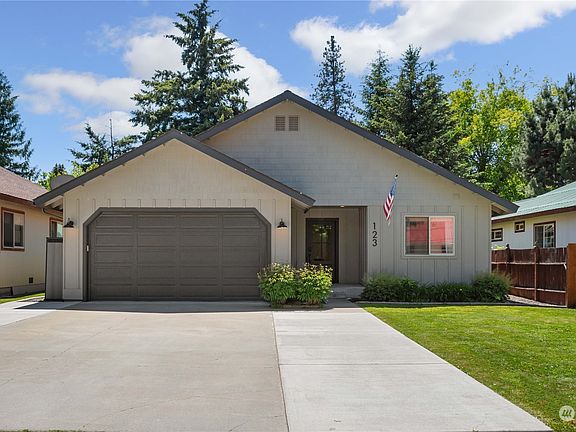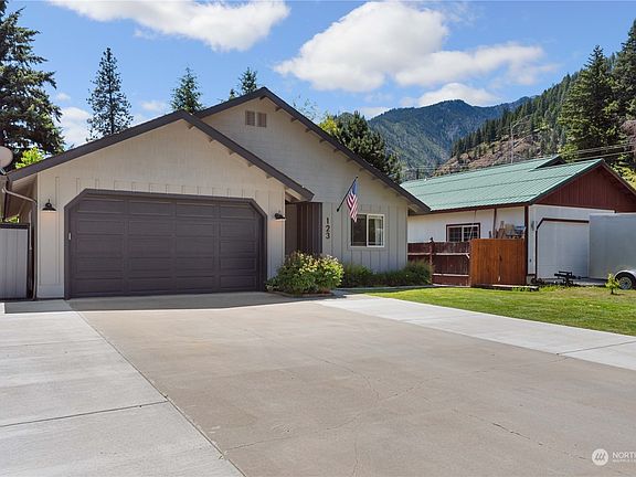 Nestled minutes from downtown Leavenworth, this newly remodeled 3-bedroom, 2-bath home combines charm and modern style. The bright kitchen features white quartz countertops, a custom-built in desk, and a large eat-at island. The spacious living room opens through French doors to a back patio, perfect for entertaining. The fully fenced backyard offers privacy, while the extra-wide driveway and two-car garage provide ample parking and storage. This home perfectly blends comfort and convenience in a prime location.