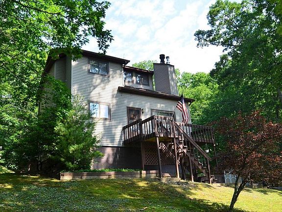 Charming 3 BR 2 BTH Contemporary home nestled on large lot in quaint Payton Place neighborhood. Welcoming you inside is an open concept 1st FL with refinished HW floors and skylights for natural light. LR offers elevated ceiling and liquid propane fp, dining RM features walk out to deck perfect for relaxing. Full bath w/laundry area,new washing machine, 1st floor bedroom. Upstairs boasts 2 bedrooms, elevated ceilings, new carpeting and a full hallway bath. Access to the attic for storage. Downstairs offers a finished basement w/ propane heater, ample storage and entrance to 1 car garage. Outside enjoy a large deck and yard for entertaining plus plenty of parking in the driveway. NO HOA FEES!! Conveniently located near, local shopping, dining and major RTs for easy commuting! USDA eligible!