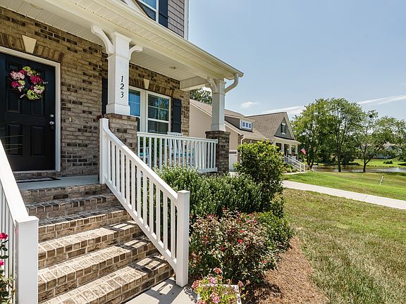 OPEN HOUSE THIS Sunday August 20th from 2-4pm! Gorgeous Oakwood plan in Sutton Springs! Premier Lot on the water at the end of a quiet street! Shows like a model! Move in ready! Five Bedrooms/Three and a half baths! First Flr Master with WIC! Amazing Master Bath retreat with shower/separate tub! Gleaming hardwood floors on first floor! Open Concept with Inviting Family Rm flows into Kitchen w/ granite, SS Fridge, Oversized Pantry, Eat in area and an oversized island! Formal Dining Rm! Study! FOUR bedrooms, Two FULL baths and Bonus UP! Located just minutes from it all! White Oak Shopping/40/Hwy 70/Hwy 50! This neighborhood also has community ponds for the residents to fish from!!