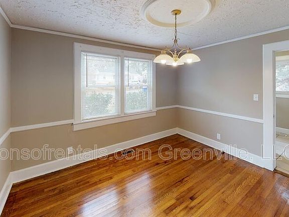Welcome to this beautifully renovated home in the desirable location of Greenville, SC! This charming single-family house features 2 bedrooms, 1 full bathroom, a formal dining room, and hardwood, ceramic tile, and vinyl flooring throughout. The kitchen comes equipped with an electric range and refrigerator, perfect for preparing meals. Enjoy the convenience of central air conditioning and natural gas heating. Residents will have access to a driveway for parking and a lawn for outdoor enjoyment. Cable and satellite are available for entertainment options. Pets are allowed in this lovely home, but smoking is not permitted. Washer/dryer hookups are provided for added convenience. Don't miss out on this fantastic opportunity to live in a beautifully renovated home in a great location!