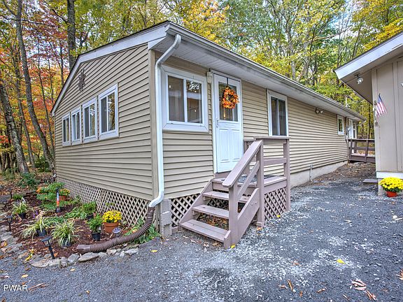 This 3 bedroom, 2 full bath home in the amenity filled community of Hemlock Farms offers one floor living in an easily accessible layout. Set on a quiet street, this ranch home boasts a bright open floor plan, cathedral ceilings, hardwood floors, a wood burning fireplace, and washer/dryer in the primary bathroom. Outside features a heated garage and a spacious, level backyard. An insulated crawlspace & spacious attic over the garage offers extra storage. Newer septic system installed in 2016. Exterior of garage painted November 2023.
