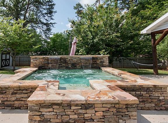 Adorable ranch floorplan with great outdoor entertaining space in the fenced backyard! Gather a crowd on the oversized patio with stacked stone waterfall spa pool as the centerpiece, plus paver firepit. Inside a Formal Dining Room off the entry is open to Great Room with fan and gas fireplace. Galley kitchen has pantry and breakfast room. Split bedroom floorplan. Home enjoys convenient location to nearby elementary and middle schools!