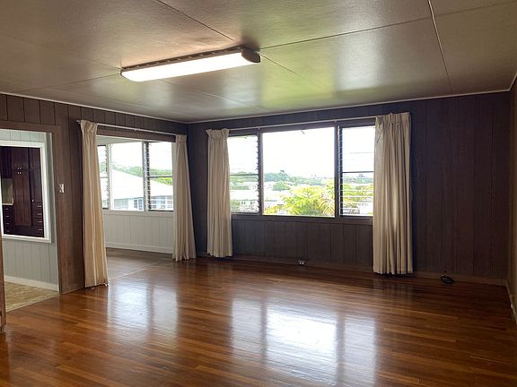 This 3 bedroom/ 1.5 bath home has been completely updated with new appliances, interior paint, and ceramic tile flooring in both baths. The original wood flooring in the living area and bedrooms has been refinished and brought back to life. Large picture windows in the living and dining area boast nearly panoramic views of down town Hilo and the bay. In addition, the louvered windows allow for plenty of airflow and breeze throughout. The primary bedroom features two large closets, and an ensuite half bath. There is full bath in the hall with a new shower/tub and vanity for the additional two bedrooms and guests. Ceiling height kitchen cabinets provide ample storage. The large utility room has a built in desk for folding laundry, work desk, or craft station. A new laundry sink has been installed with washer/dryer hookups. Spacious two car covered carport, as well as an extended and covered outdoor area. This property is located close to Hilo Medical Center, schools, dining, shopping, and all other amenities. Yard service is included. No Pets. Rent: $2300.00 plus GET $108.38 = $2408.38 Security Deposit: $2300.00 Tenant Responsible for Electric, Cable/Internet, Water, Sewer, and GE Tax. Owner Responsible for Yard Service. No Drugs, No Smoking. Minimum Lease Term: 6 Months All applicants subject to a $37 background and credit check. Please drive by the property prior to submitting an application. Drive by only! Do not access the property or disturb the current tenants.