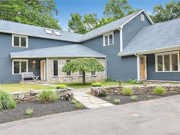 Serenity NOW! This completely rennovated Colonial offers a Main level master suite w/new full bath featuring a new tiled shower & soaking tub w/vaulted ceiling, dressing room and deck overlooking stocked pond, new hardwood floors throughout, waterviews from almost every room, large new kitchen w/SS appliances, marble island, new cabinetry,wine chiller & full Pantry w/Laundry room & tiled pet shower, formal dining room w/hdwd floors, water views & octagonal custom ceiling, a step down den for extended relaxation and private deck overlooking 6.4 private acres, a large fam.rm w/FP & wood stove insert, sliders to sunroom overlooking pond extension, lily pads & remodeled bridge to gazebo, upper level offers 3 more bedrooms, a full bath & a library w/private deck, a separate 2 level potential in-law/au-pair suite w/full bath & separate entrance/exit (buyer to exercise due dilligence w/Bethel on making it a full in-law). Plenty of light and open floor plan to this contemporary design. Large 2 car garage & plenty of parking for guests. Beside the privacy & serenity, house is Solar Assisted for lower electric costs and is NOT leased. It is owned by the seller. 2.5 miles to quaint Bethel center, train, shopping,& restaurants. Easy commute to and from NY City!