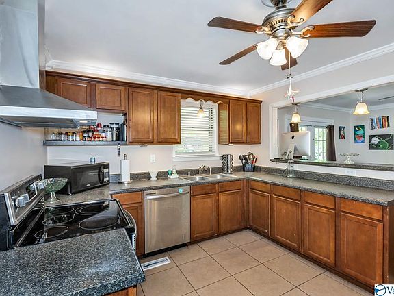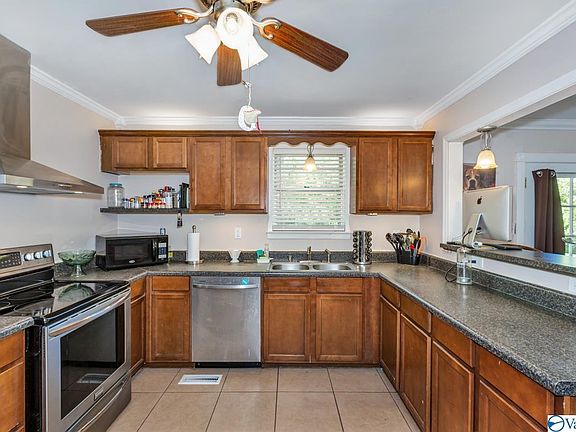 Lovely updated and move-in ready ranch with over 3 acres! Spacious and functional kitchen with stainless steel appliances, tile flooring, breakfast bar, pantry and ceiling fan! Beautiful formal living room with large picture window allowing plenty of natural light! Hardwoods and crown molding throughout the living areas! Flex room/office space off the kitchen with laminate flooring perfect for playroom, office, or storage. Fourth bedroom could serve as small business space as it has it's own entrance. New flooring, fixtures, and lighting throughout. Great location just 15 minutes to downtown Huntsville, access not affected by 231 road closure!