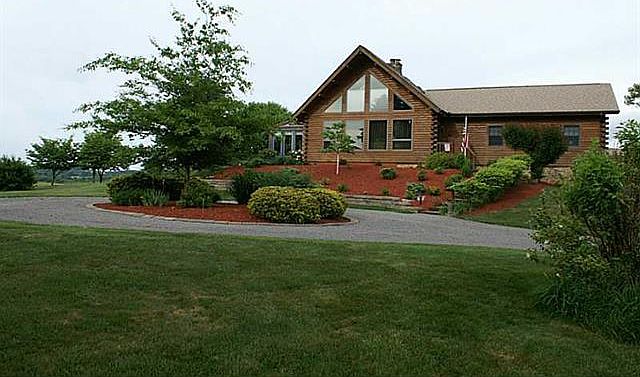This stunning Kuhns Brothers build log home has been impeccably maintained for 20 years! Enjoy majestic views from almost every angle complete with beautifully maintained yard with coy pond. Open floor plan with gorgeous wood floors, walls and ceilings enhanced by windows and natural light that flood the house with beauty! Living room boasts a 2 story A-frame ceiling with sky lights and magnificent 2 story stone fireplace. Roof replace 2008, 50-gallon HW tank installed 2014, furnace replaced 2012