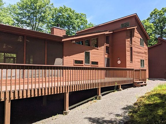 Looking for a unique home with lots of room for you, your family, and guests? Take a look inside this five bedroom, three-and-a-half full bathroom, two story home with full finished basement and garage situated on an acre and a half in the amenity filled community of Hemlock Farms. Main level features living room, dining room, kitchen, two bedrooms and full bathroom. Upper level has spacious loft for sitting area, hobby space, or home office, and a main bedroom suite with its own full bathroom. Lower level features family room, workshop, and laundry area. A great feature of this home is a possibility for a mother/daughter with its second living space that features living room, two bedrooms, and one-and-a-half bathrooms. The outside of home is just as nice with its no-knot tongue & groove Western Red Cedar exterior. Beautiful Pocono home is awaiting your arrival. Come and enjoy what Pocono living is all about. Bring your family and guests with you.