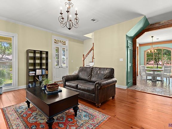 Beautiful custom built home in Plantation Estates! All of the charm and quality materials of historic homes but the peace and comfort of modern construction. Beautiful reclaimed cypress beams and rafters grace the transition from living room to dining and kitchen area. Kitchen has beautiful custom cypress cabinetry, copper hood over gas range oven, charming coffee bar, great pantry and so much storage. Island provides additional counterspace and bar seating because everyone loves the kitchen! Dining room is spacious and has huge arched window over looking side yard with view of magnificent live oak tree. Gorgeous arched brick transition into the family room (no pictures of that area yet—staging area for moving boxes right now). Beautiful full brick flooring throughout most of 1st floor but living room and master bedroom have extra wide pine plank flooring that is in pristine condition. Living room features lovely bricked fireplace with cypress mantle. Full height windows to the ground add more charm and authenticity to the home. Crown molding throughout most of the home. Family room is spacious and has wall of windows looking out to backyard patio and large backyard. Master bedroom is spacious with beautiful wide plank wood flooring, Beautiful windows with plantation shutters over look another majestic live oak tree in the front yard. En suite bathroom has more custom cypress cabinetry and tub/shower combo. Huge walk-in closet. Upstairs has 2 mirror imaged extra large bedrooms and 2 full bathrooms on either side of the wood staircase. Upstairs bedrooms recently renovated with new hardwood flooring. Closet doors were removed for seller's function as office and workout rooms but are in storage and will remain. Each bedroom has private en suite bathroom with custom cypress cabinetry and tub/shower combo. Front porch is charming with front porch swing. Backyard features huge back covered patio and mostly fenced yard. Perfect for pool and an outdoor