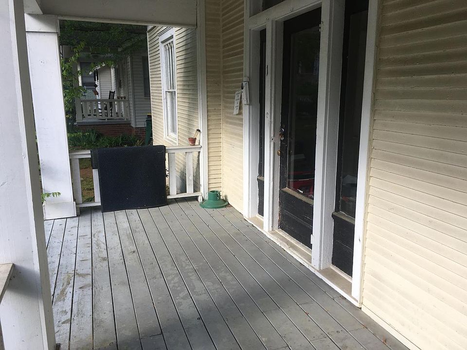 This property is a 1 bedroom/ 1 bath apartment. It has central heat and air, 10 ft ceilings. The flooring is all hardwoods and tile. It has a kitchen with cabinets and room for a bistro table. A stove and fridge are included. The bedroom is very large and has a walk in closet. Private front deck for outdoor living and front door parking. Approx 800 sq feet/ new paint. Water is paid. Owner pays water. Tenant is responsible for electricity.