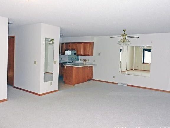Nice one level townhome with oversized two car garage that is insulated and sheetrocked. Kitchen has pennisula and is open to dining and living room. Kitchen has a pantry. Two bedrooms, one has a door to a backyard deck. Roof was new in 2008. Association $85 per month pays insurance, garbage pickup, hazard insurance and snow & lawn care.