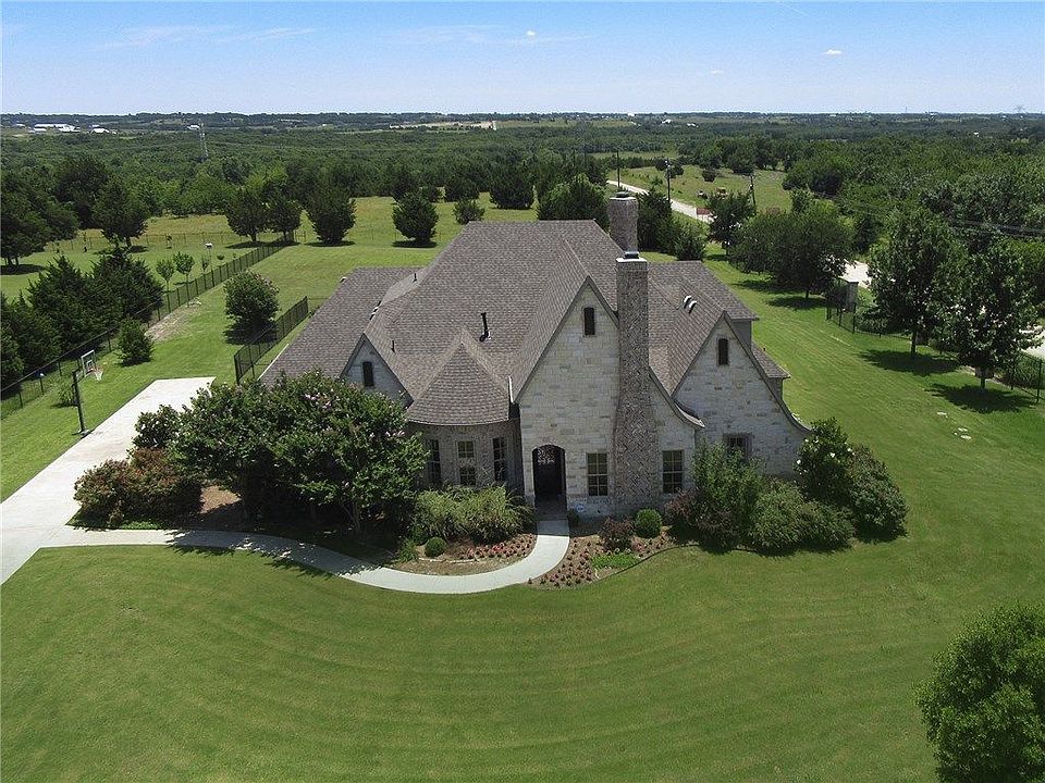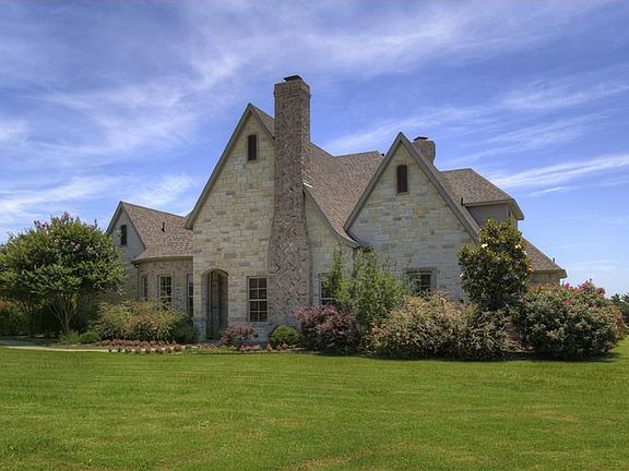 Meticulously maintained, like new, custom stone and brick home on huge l.7 acre lot with incredible pastoral views is located in prestigious neighborhood and features open floor plan with tons of amenities. Extended drive welcomes your arrival. Beautiful hand scraped hardwood floors adorn entry and run throughout most of the downstairs living area. Gorgeous home office is complete with floor to ceiling stone fireplace, custom built ins and hand scraped wood floors. Oversized formal dining room features lovely iron chandelier, custom drapes and hand scraped hard wood floors. Large family room features wood beam ceiling,arched doorways, floor to ceiling stone fireplace with custom mantle, custom built ins, and hand scraped hardwood floors. Stunning kitchen features granite counter tops, marble backsplash, large island with breakfast bar, 2 spacious pantries, commercial style stainless steel appliances include built in dishwasher, microwave, gas cooktop, double ovens, ice maker, and refrigerator. Kitchen opens onto large breakfast area with iron chandelier. Spacious mudroom features custom built computer niche and drop off area and opens onto utility room with granite counter tops, custom cabinets, sink and space for full size washer and dryer and freezer. Beautifully detailed downstairs guest bedroom features hand scraped hardwood floors, walk in closet and private full bath. Large 2nd living area/game room is complete with wood beam ceiling and can easily accommodate a full sized pool table. Two spacious auxiliary bedrooms are complete with sitting area, roomy closets and private full baths. Oversized 3 car garage is complete with outside door to back lawn and built in closet. Huge covered patio overlooks gorgeous, l.7 acre fenced backyard with firepit and picturesque views. This beautifully maintained, move in ready home is just what you have been waiting for. Dont miss it!