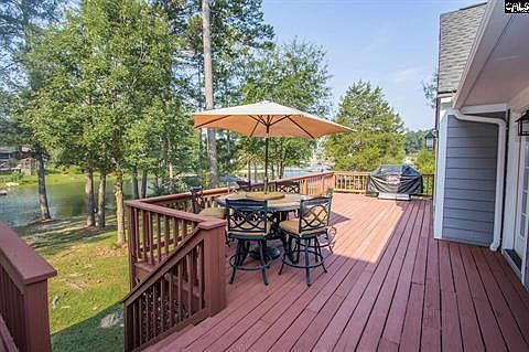 Lake Murray Home. Located in a quiet cove. Close to Lexington. Lexington One Schools. Great room with wood burning fireplace and soaring tongue and groove ceiling. Wet Bar, expansive floor-to-ceiling windows with views of Lake Murray cove. Custom Kitchen with granite island and counters. New refrigerator, dishwasher, and range, stainless appliances, and tile backsplash. Owners suite on the main level with custom tiled walk-in shower and dual vanity.Expansive rear deck. Sprinkler system fed by lake. Dock coming next spring!