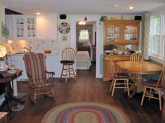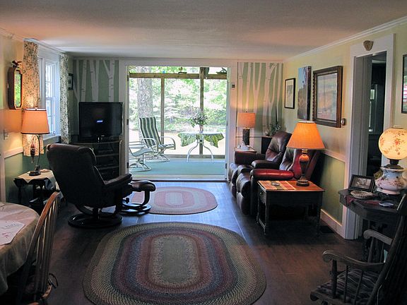 Here is a unique, one of a kind property for sale. Although a small home of 760 sq. Ft. and probably not for all, it is perfect for people who want to downsize, (retired, empty nester's, DINKS) and are looking for a full time, or vacation home in the mountains on a river. Including the out buildings, front porch, and half cellar the total footage is 1722. Land area is aprox. .70 acres. The most special thing about this home is its location. With 254 Ft. frontage on the pristine Saco River, swimming, fishing, canoeing, kayaking and tubing is all right here. Located in Conway Village in a quiet small neighborhood on a dead end loop, there is very little traffic. It's just a few miles from North Conway with its ski areas, restaurants, and tax free outlet shopping. It has town water and sewerage. It has a good size yard, with gardens, both flower and vegetable with a six zone irrigation system. The house is above the river and is NOT in the floodplain. Built in 1947 and renovated and enlarged in the 60's. When we purchased it 1998 we did a major, including new kitchen with vaulted ceiling, bath, all new electrical and plumbing, and energy efficient windows. Also was a large screened in porch overlooking the river. We spend a lot of time out here. The back yard has a fire pit and is great for cook outs. It has a new efficient gas hot air heating system (2011) and new flooring (2014) This is a year round home.We would prefer to sell this home completely furnished, turn key. We have another home in Florida and don't need the furnishings. There are only two small tables, a lamp, and maybe a picture or two that have personal meaning to us that are not included. When we say completely, we mean all furniture, beds, TV's, surround sound, rugs, linens, dishes, pots, pans, utensils, kitchen appliances, (I'm a "foodie" and have a lot). In the office/bedroom there is some office equipment and books. A small green egg, and a deluxe Webber kettle grill and utensils, recycled plastic picnic table, many lawn chairs and tables. The garden shed is full of tools, spreader, wheel barrow, and a Toro lawn mower. The other shed (10x16) is a workshop and has a 50 amp RV hookup. There is also a workbench and set tub in the basement. And of course a canoe !Available completely furnished for $334,500.