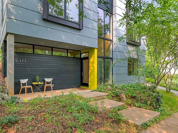 Beautiful modern energy efficient home designed by owner architect in Riverbluff, a conservation community with private access to the Rivanna Trail, 15 acres of common space and playground. Access the river for boating or tubing from Riverview Park. In the City, and yet secluded quiet circle. Earthcraft and Energy Star Certified. Light flooded, with stunning views in established neighborhood. 5 BEDROOMS, 3 BATHS. Ground floor entry has large family room with built in desks, a guest suite with full bathroom and storage. The middle floor has an open layout with large windows and access onto a shady private deck. The top floor has four bedrooms, one with en suite bathroom. Built 2012. Very well maintained, freshly painted, updated appliances.