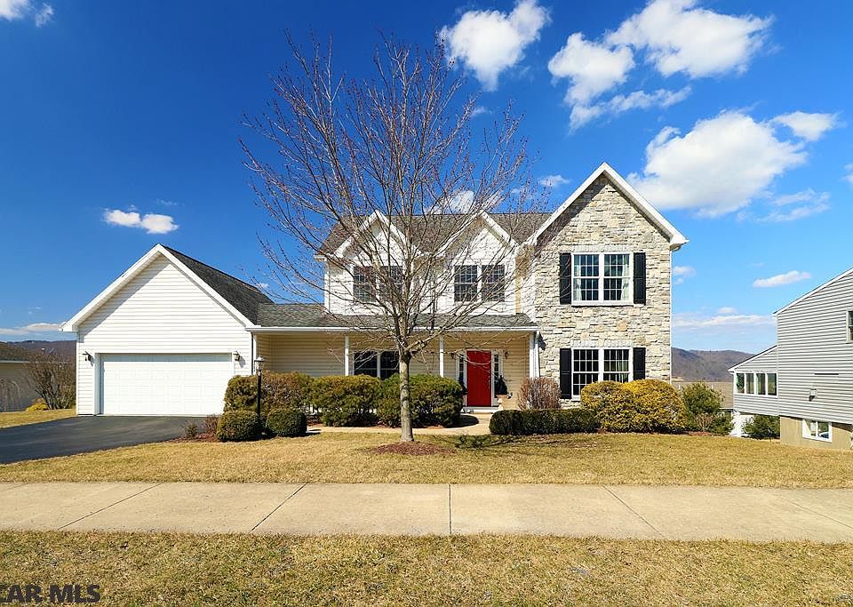 Welcome to the blissful Burnham Farm Estates! Attractive Sam Homan built two-story holding 4 bedrooms including a spacious owner's suite with private ensuite bath with jetted tub and walk-in closet. Grand entry with high ceilings, well maintained oak hardwood flooring as well as new carpet in the living room areas. Open floor plan from the kitchen into the living room with abundant maple cabinetry and countertop space for any storage and meal prep! Entertain or grill for the summer from the spacious deck with breathtaking views of the mountains beyond. Or simply beat the heat but relax in the shade on the new paver patio overlooking the mountains and fenced yard or simply relax on the covered front porch. With a finished lower level, pre-plumbed for the third bathroom, you have plenty of space to spread out or create a second living area, rec room, or cozy home gym!