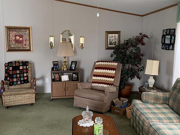 This is a really nice double wide manufacture /mobile home. It is very spacious and in move-in condition. The living room is vaulted and open to the dining area and kitchen. The laundry is off of the kitchen and there is lots of cabinet space in the kitchen and dining area. The master has its own bath with a walk in shower and soaking tub. There are two additional bedrooms and another full bath as well. The back of the home is very nice. It overlooks over a field and open space. There is a shed for extra items . Where can you find first floor living for this price? !!! Really a great buy in a very nice community.