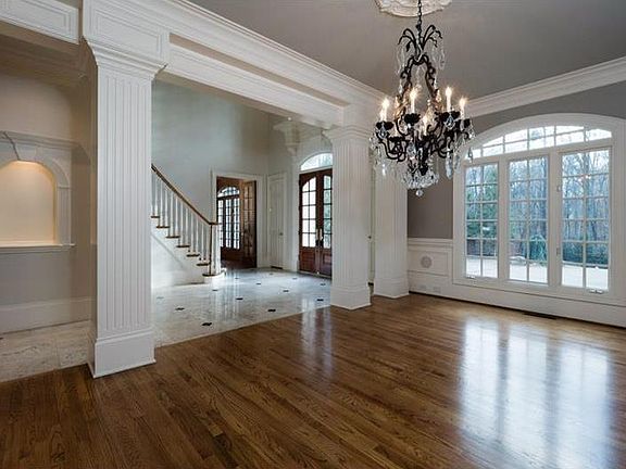 - Interior: 2-Story Foyer, Double Vnty Other, Entrance Foyer, Hardwood Floors, Trey Ceilings, Walk-In Closet(s), Bookcases, Disp Attic Stairs, Wet Bar, His & Her Closets, 10 ft + Ceil Upper, Rear Stairs