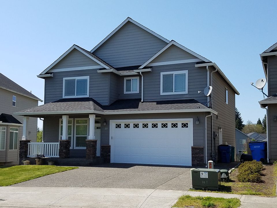 Immaculate traditional backing to greenbelt. Popular open concept floorplan w/soaring ceilings & abundant natural light. Well-equipped kitchen w/cherry cabinets, open to family rm & sunny eat-area w/slider to deck. Master ste w/walk-in closet & private bath w/dual-sink vanity. Convenient upstairs laundry. Fantastic outdoor space w/covered front porch & large deck w/gas hook-up. Near great schools, easy I-5 access, 20 min to Vancouver.